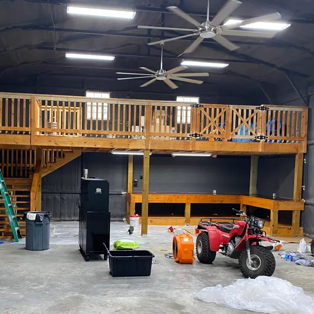 Ideal for ceiling heights up to 12 feet. Perfect for metal buildings, warehouses, fabrication shops, garages, barns, hobby shops, automotive restoration, showrooms, and manufacturing facilities.