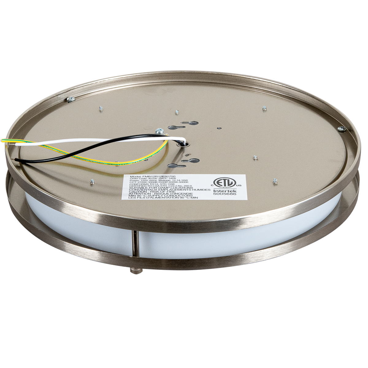 Energetic Lighting FMB12R12E92750 12" Flush Mount Double Ring Brushed Nickel 16W/14W/12W, 120V, Dimmable, Color Selectable