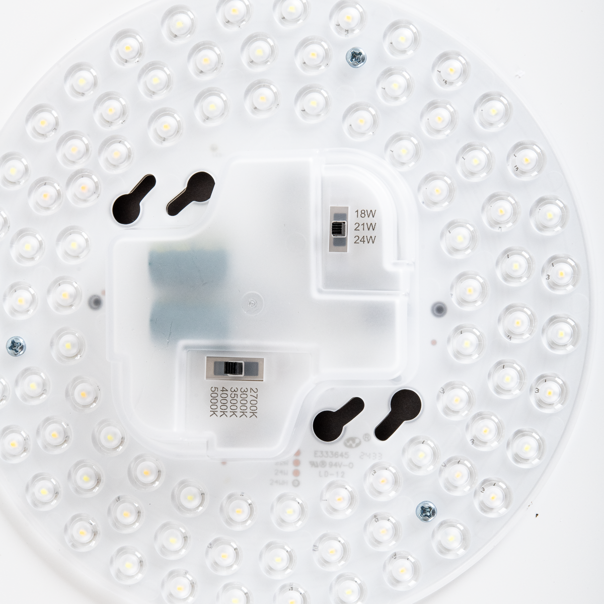 Energetic Lighting’s FMB series of LED round flush mount fixtures are designed to emulate the look and feel of traditional circline fluorescent tube flush mount fixtures, but operate at a significantly lower wattage. Fixtures are available in 12-inch or 16-inch diameter options, replacing some of the most commonly used configurations. ezCCT features allow for field-selection of CCT (2700K, 3000K, 3500K, 4000K, or 5000K), accessible by removing the diffuser. Our ezWatt feature allows selectable wattage in 3 steps, see specifications for wattage breakpoints. Installation is quick and simple when mounting over standard ceiling junction boxes using the included crossbar and hardware, and further output control is available by installing on circuits with standard wall triac dimmers. With a CRI of >90, this fixture will bring out vibrant true-to-life colors of all objects illuminated within the room. Constructed with a durable steel housing body and LED lifetime rating of at least 50,000 hours, this rugged flushmount is designed for many years of reliable operation.
