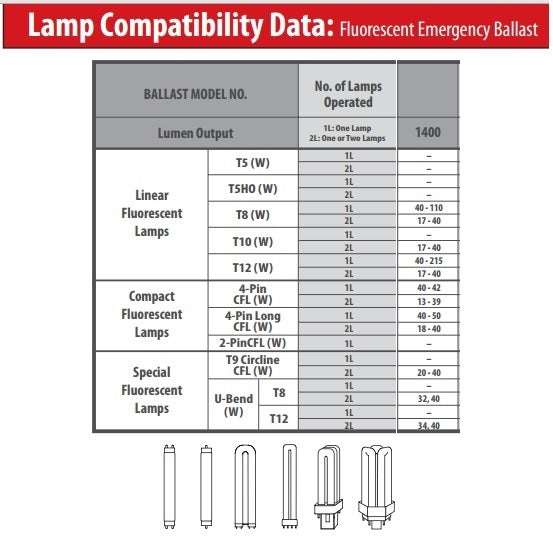 1400 Lumen Fluorescent Emergency Ballast T12/T8/CFL (Case of 4)