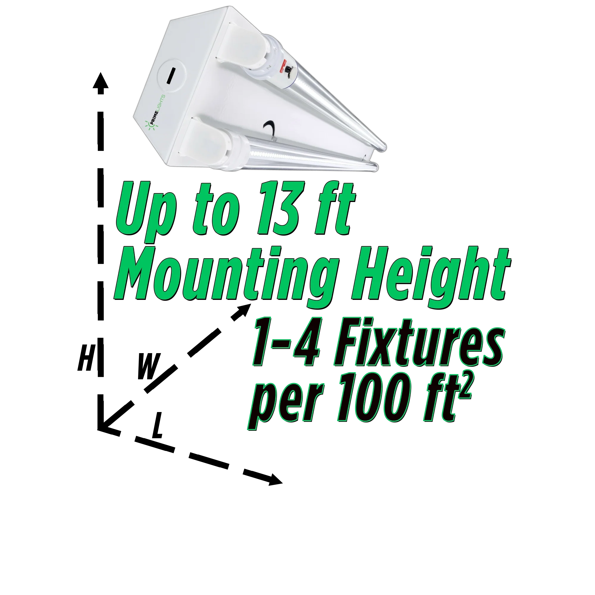 Applications: The PrimeLights® LED Bolt® 2 is the ideal fixture for ceiling heights ranging up to about 9', depending on spacing and application. Transform your shop to picture perfect daylight with clean, energy efficient, cool running, bright LED four-foot fixtures. Ideal for any size shop including metal buildings, warehouses, fab shops, garages, barns, hobby shops, car restoration, showrooms, and factories just to name a few. Frosted lamps provide reduced glare when compared to clear. For higher ceilings please see our PrimeLights® LED Bolt® 3 (up to 12') or Stingray® 4 & 6 Series (up to 20' & 35').