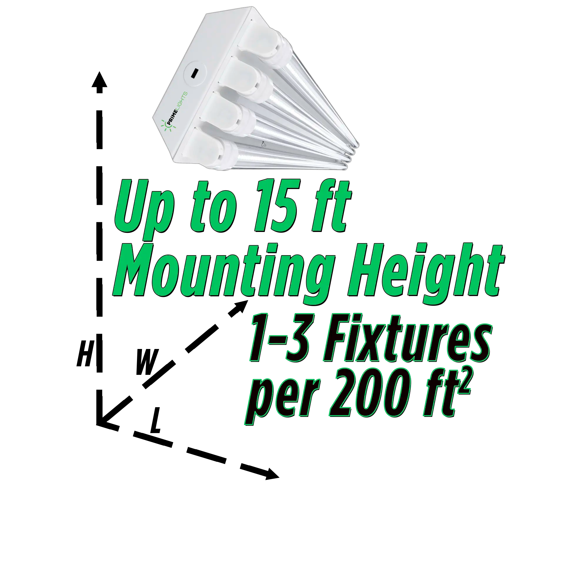 Specifications: Wired lamp holders, luminaire disconnect with 4 connection points for easy daisy chain, 20-gauge cold rolled steel in baked white enamel, 7/8'' conduit knockouts on both ends and top, mirrored aluminum reflector. Clear or Frosted LED bulbs with internal drivers - no external drivers or ballasts to maintain. You will never have to change anything inside the fixture. PrimeLights® warranties every fixture and every bulb for 5 years. 110v,120v, 240v, 277v. Long lasting, durable, and bright, this is the last light fixture you will ever need!