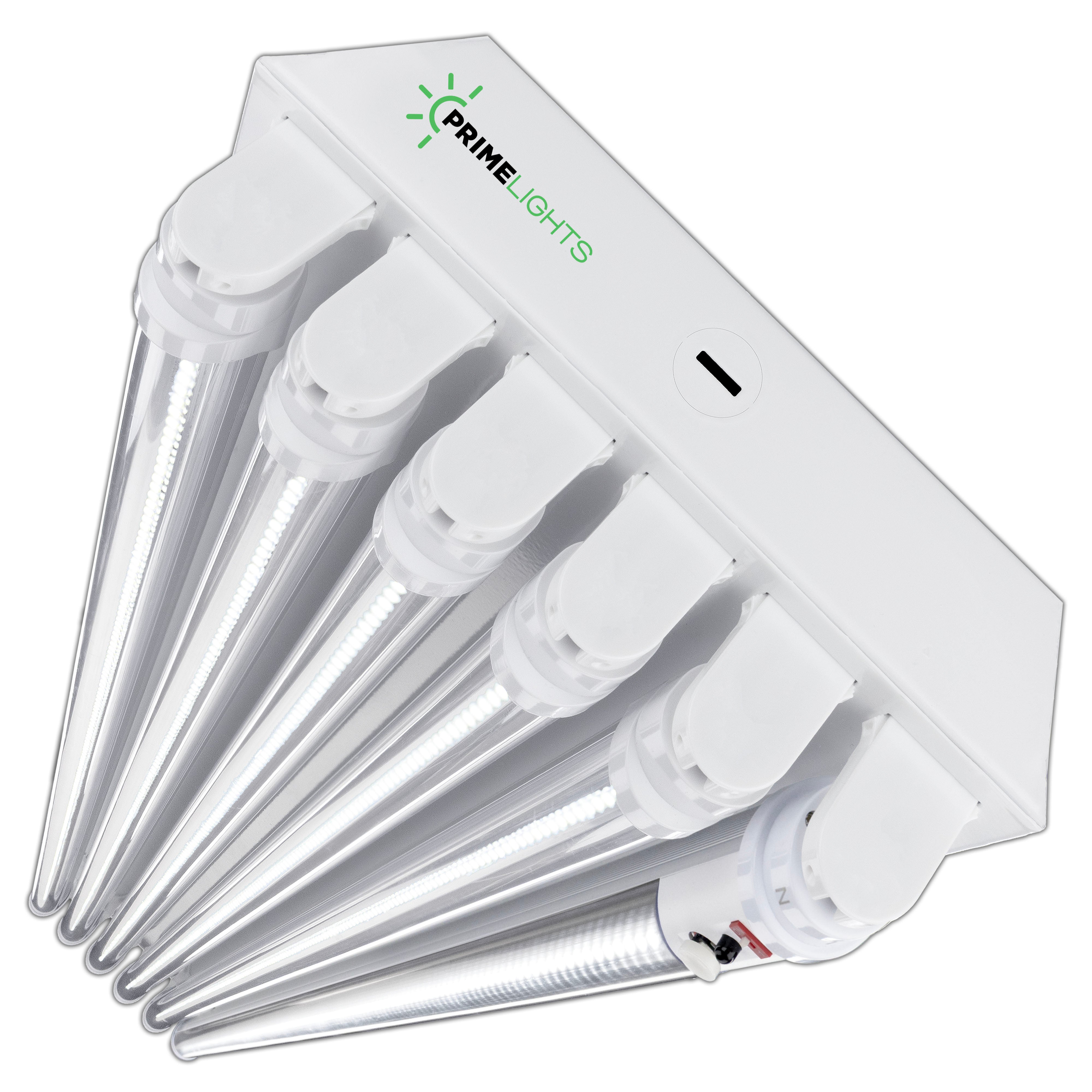 Specifications: Wired lamp holders, luminaire disconnect with 4 connection points for easy daisy chain, 20-gauge cold rolled steel in baked white enamel, 7/8'' conduit knockouts on both ends and top, mirrored aluminum reflector. Clear or Frosted LED bulbs with internal drivers - no external drivers or ballasts to maintain. You will never have to change anything inside the fixture. PrimeLights® warranties every fixture and every bulb for 5 years. 110v,120v, 240v, 277v. Long lasting, durable, and bright, this is the last light fixture you will ever need!