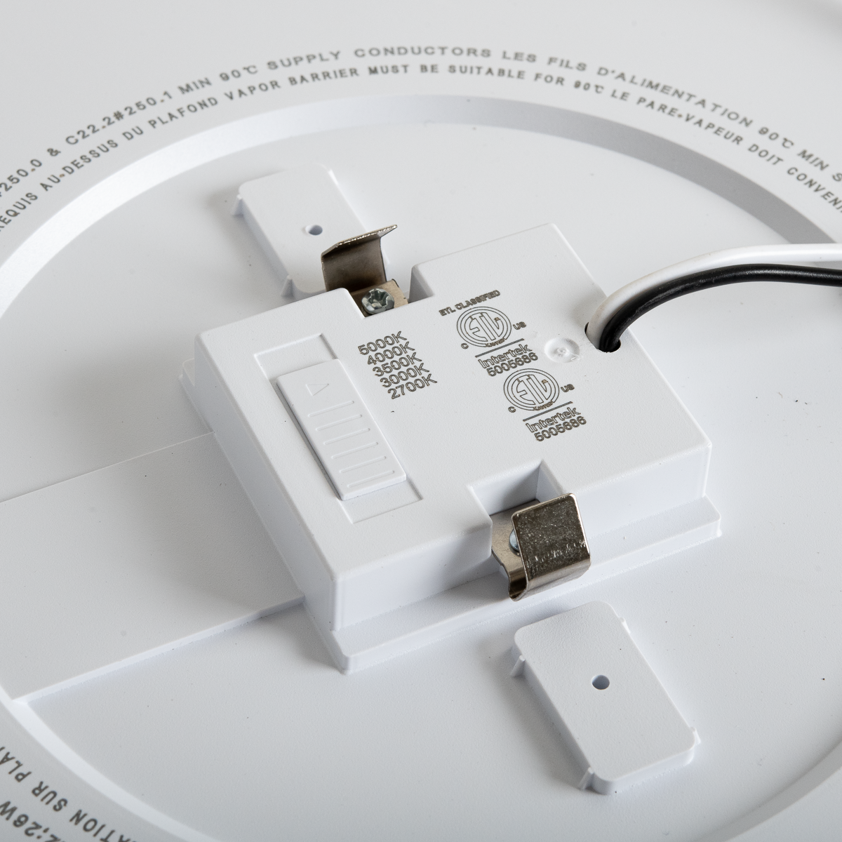 - Dual mounting system - install into standard junction box or 5"/6" recessed downlight can using supplied spring clips.